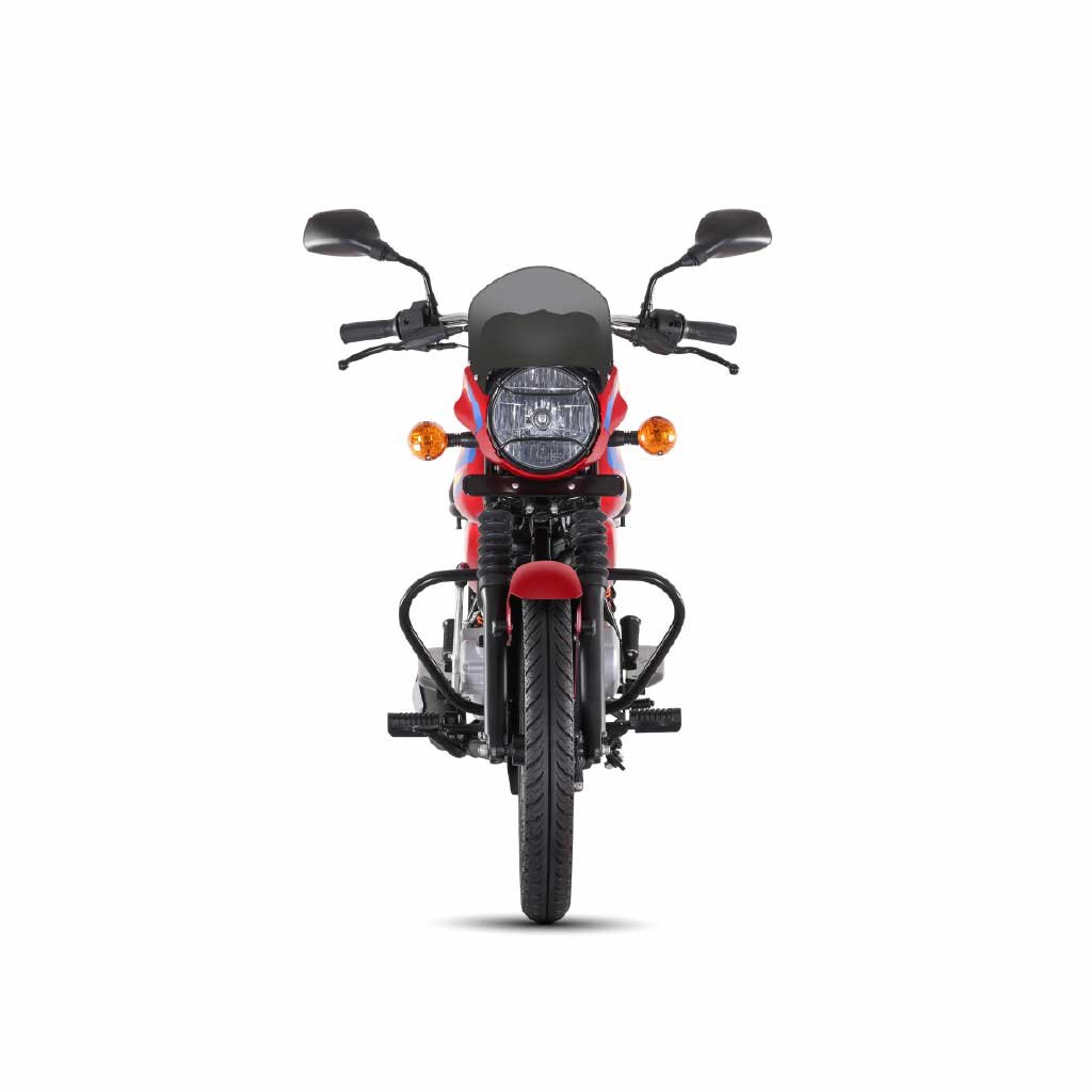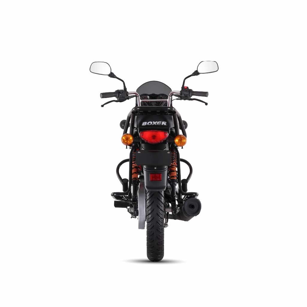La Boxer 150 presenta una estructura sólida, caracterizada por su suspensión trasera SNS (Doble Resorte) y una suspensión delantera telescópica de 125 mm. Además, cuenta con frenos a tambor de 130 mm en ambas ruedas. Sus llantas de aleación están montadas con neumáticos Tubeless (sin cámara), garantizando mayor comodidad y seguridad.