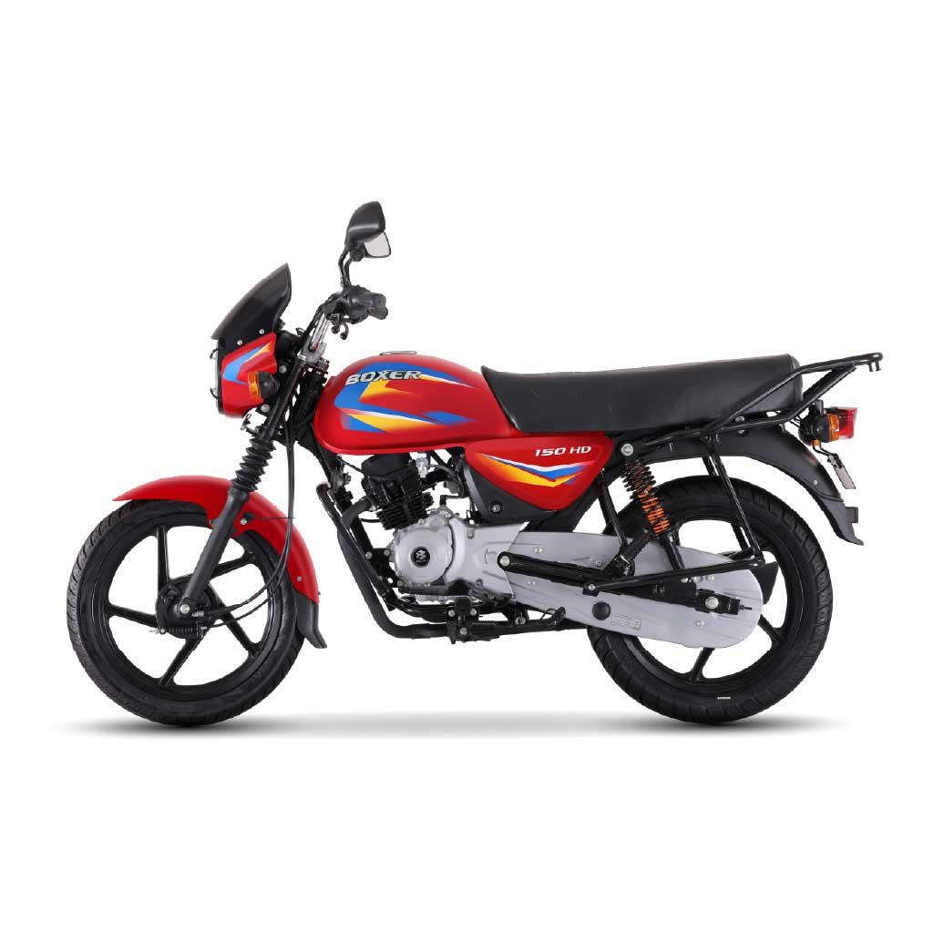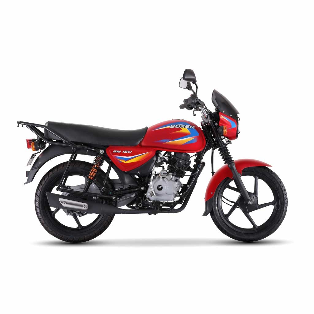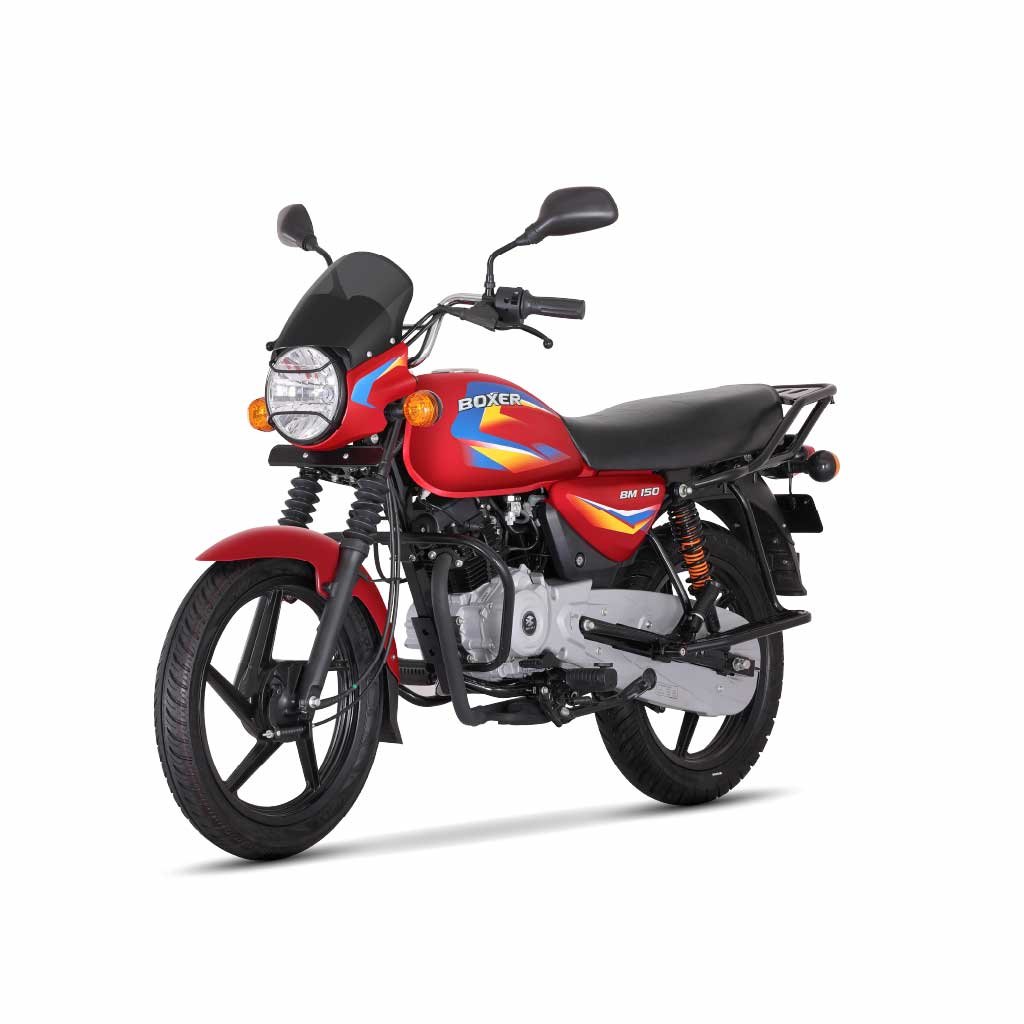 La BAJAJ BOXER 150 (BM 150) es una motocicleta de trabajo, FAVORITA EN 100 PAÍSES, con un motor monocilíndrico de 4 tiempos de 144.8 cc. Ofrece una potencia de 12 Hp a 7500 RPM y un torque de 12.5 Nm a 5000 RPM, junto con una transmisión de 5 velocidades. Su diseño se enfoca en la durabilidad, con una suspensión trasera robusta.